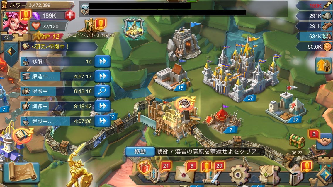 『ロードモバイル』は、資源を集めたり、施設を強化したりしつつ…他の国や敵と戦う、ストラテジーMMORPGです!