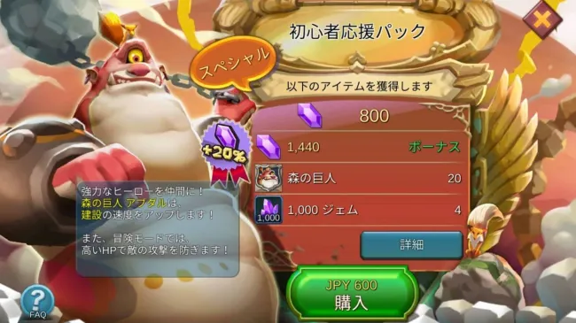 はじめて課金を考えている人には、「初心者応援パック」がおすすめです。