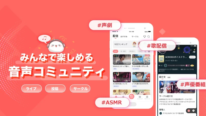 声劇・歌ってみた・声真似・ASMRなど幅広いジャンルに対応しており、音声コンテンツが好きな人にはかなり相性の良いアプリです。