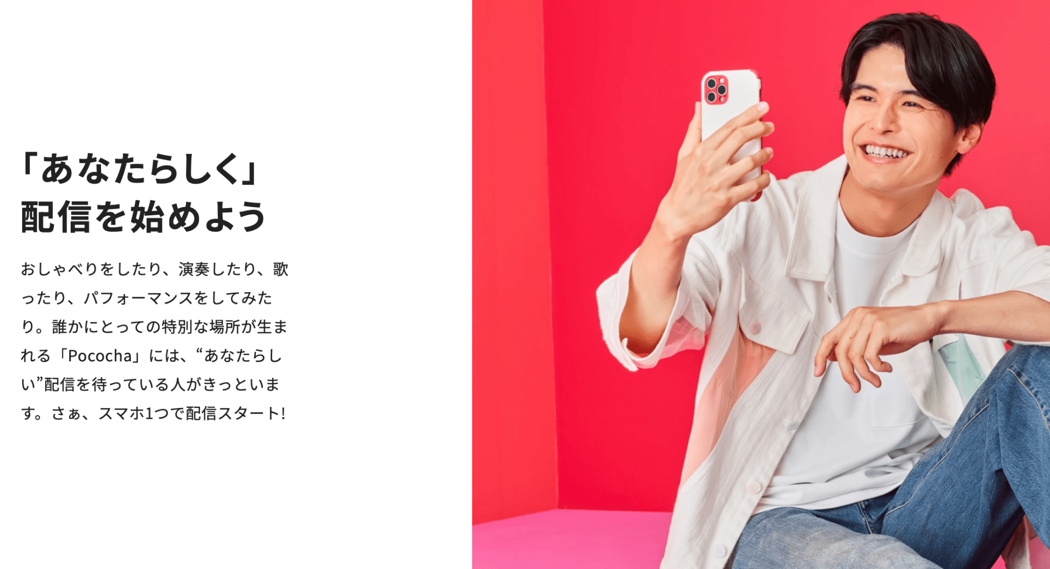 Pocochaは、スマホ1台で気軽にライブ配信や視聴を楽しめるアプリです。