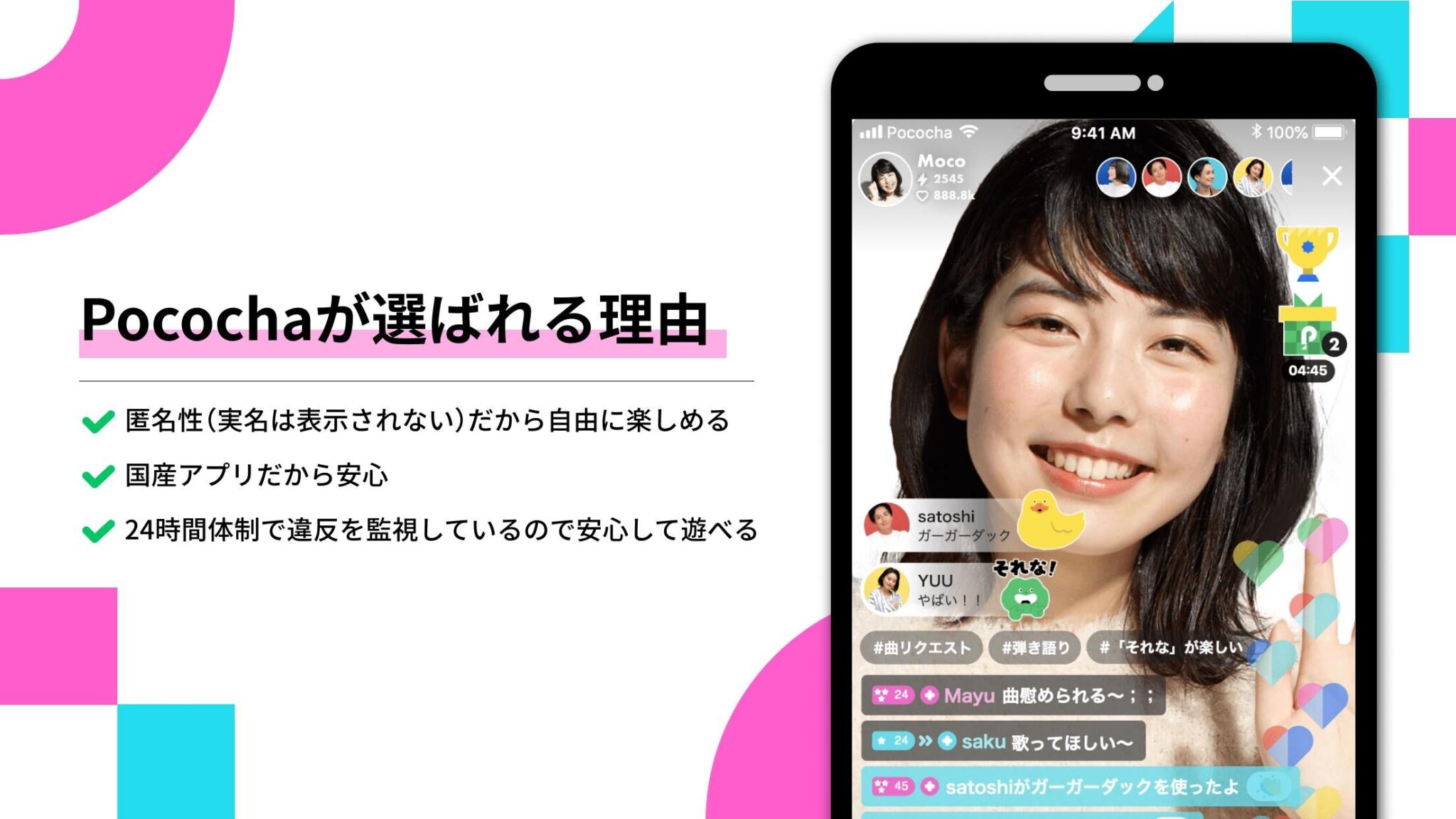 Pocochaは、ライブ配信アプリをこれから始めたい人にも、見るだけで楽しみたい人にも入りやすいアプリです。